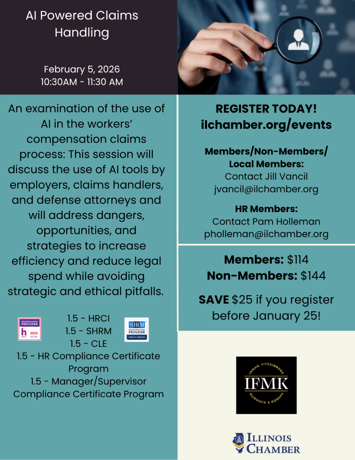 An examination of the use of AI in the workers’ compensation claims process: This session will discuss the use of AI tools by employers, claims handlers, and defense attorneys and will address dangers, opportunities, and strategies to increase efficiency and reduce legal spend while avoiding strategic and ethical pitfalls.
