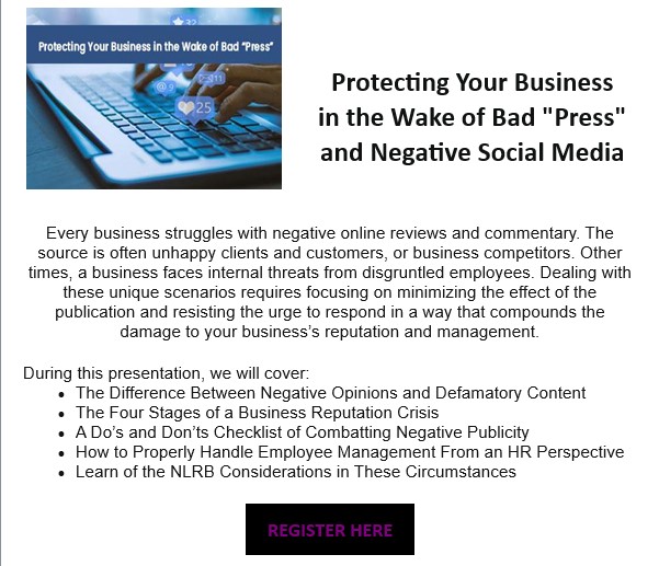 Protecting Your Business in the Wake of Bad “Press” and Negative Social Media
